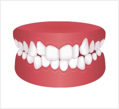 Overlapping or interlocked teeth due to limited space, leading to plaque buildup & gum disease. ODS Aligners straighten teeth & improve oral care.